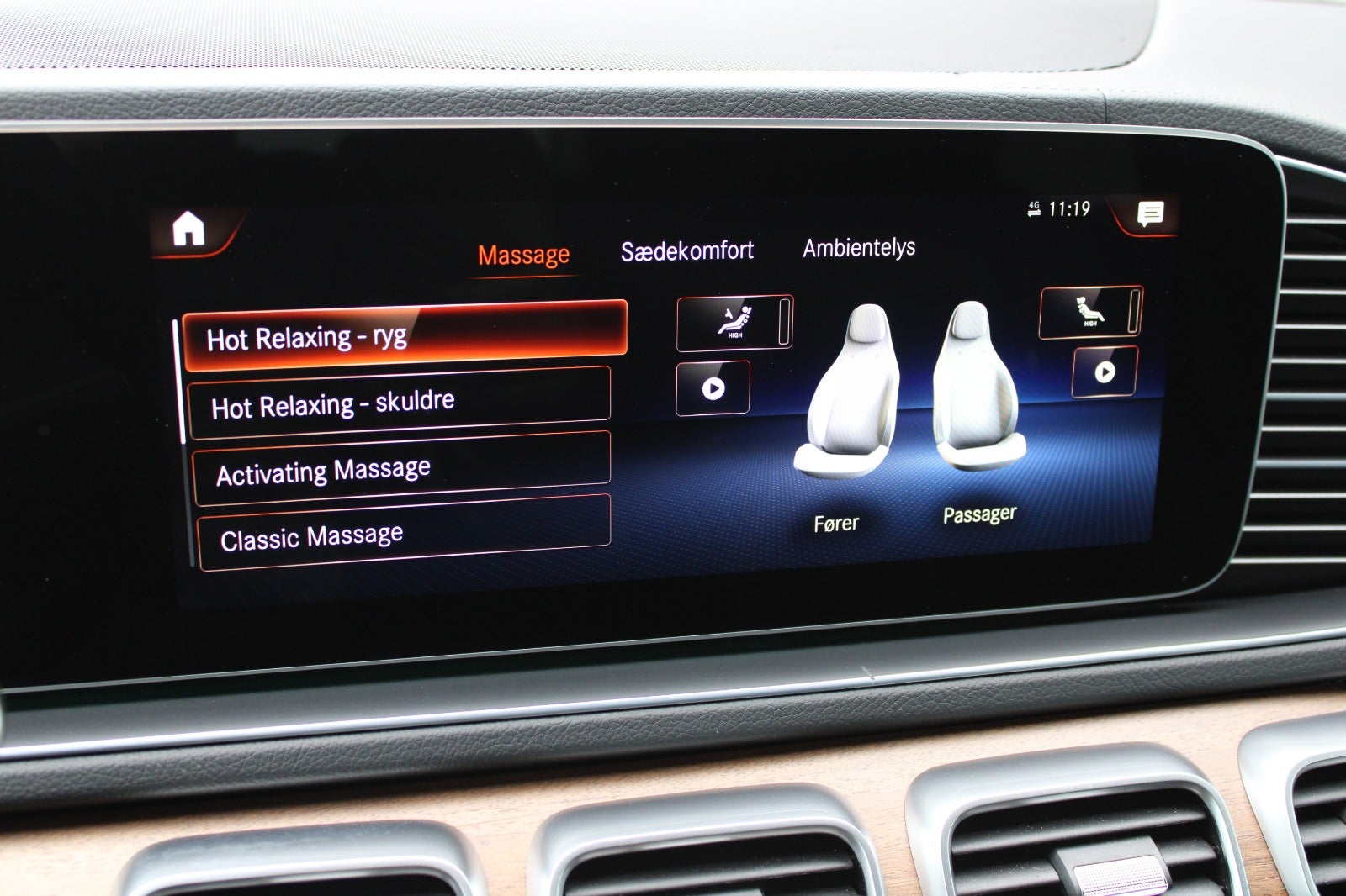 * Ventilation og massage i forsæder